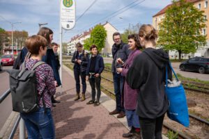 Es war eine äußerst gelungene Mischung aus Vorträgen, Spaziergängen und Workshops, möglich gemacht durch die Beteiligung von: Sybille Bauriedl (Flensburg), Linda Pasch (Flensburg), Eric Losang (Leipzig), Katharina Schmidt (Hamburg), Katrin Singer (Hamburg), Pascal Dreier (Köln/London), Felix Egle (Halle), Inga Gryl (Essen), Roman Maurer (Mainz), Elisabeth Sommerlad (Mainz), Eva Paulitsch (Göppingen), Elisa Möller (Halle), Marie Witte (Halle), Paula Barth (Halle), Matthias Görlich (Halle), Studiengruppe Informationsdesign (Halle), Lea Bauer (Leipzig), Philip Boos (Berlin), Eva Nöthen (Frankfurt/Halle), Gabriele Reuter (Berlin), Ina Turinsky (Halle), Henning Frančik (Halle).